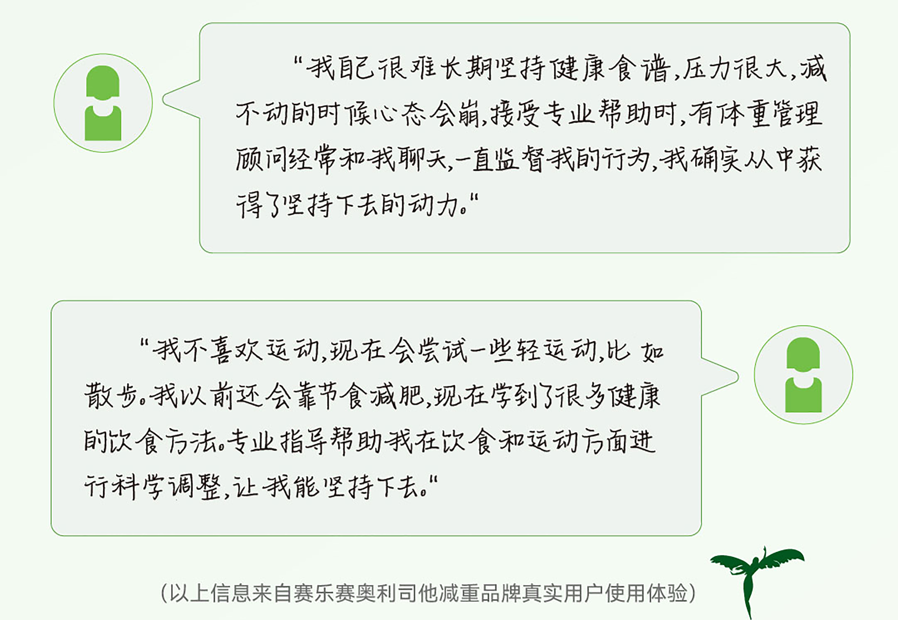《藍皮書》收錄的減重者心聲印證了這一點。一位用戶表示:“我自己很難長期堅持健康食譜,壓力很大,減不動的時候心態會崩。接受專業幫助時,有體重管理顧問經常和我聊天,一直監督我的行為,我確實從中獲得了堅持下去的動力。”另一位用戶則提到:“專業指導幫助我在飲食和運動方面進行科學調整,讓我能堅持下去。”